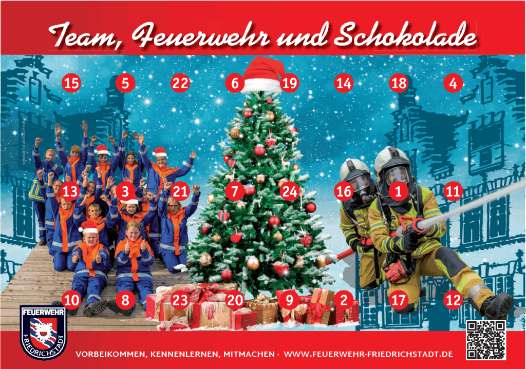 Die Weihnachtszeit ist eine besondere Zeit – eine Zeit der Gemeinschaft, der Vorfreude und des Zusammenhalts. Und genau das möchten wir, die Feuerwehr Friedrichstadt, auch in diesem Jahr mit einem ganz besonderen Projekt fördern: Unserem eigenen Schoko-Adventskalender!