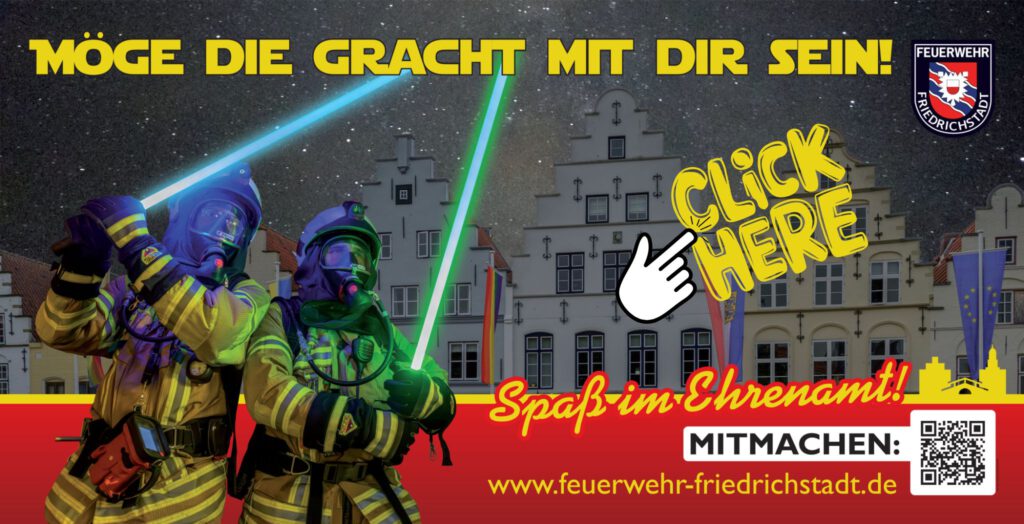 Gestern war es endlich soweit: Wir haben unsere brandneue Werbekampagne im Rahmen der Grachtenweihnacht vorgestellt! 🎄🚒 Getreu dem Motto „Spaß im Ehrenamt“ haben wir Feuerwehr und Star Wars auf unsere ganz eigene Weise interpretiert – und wollen damit auf die wichtige Arbeit in unserer Stadt aufmerksam machen.
