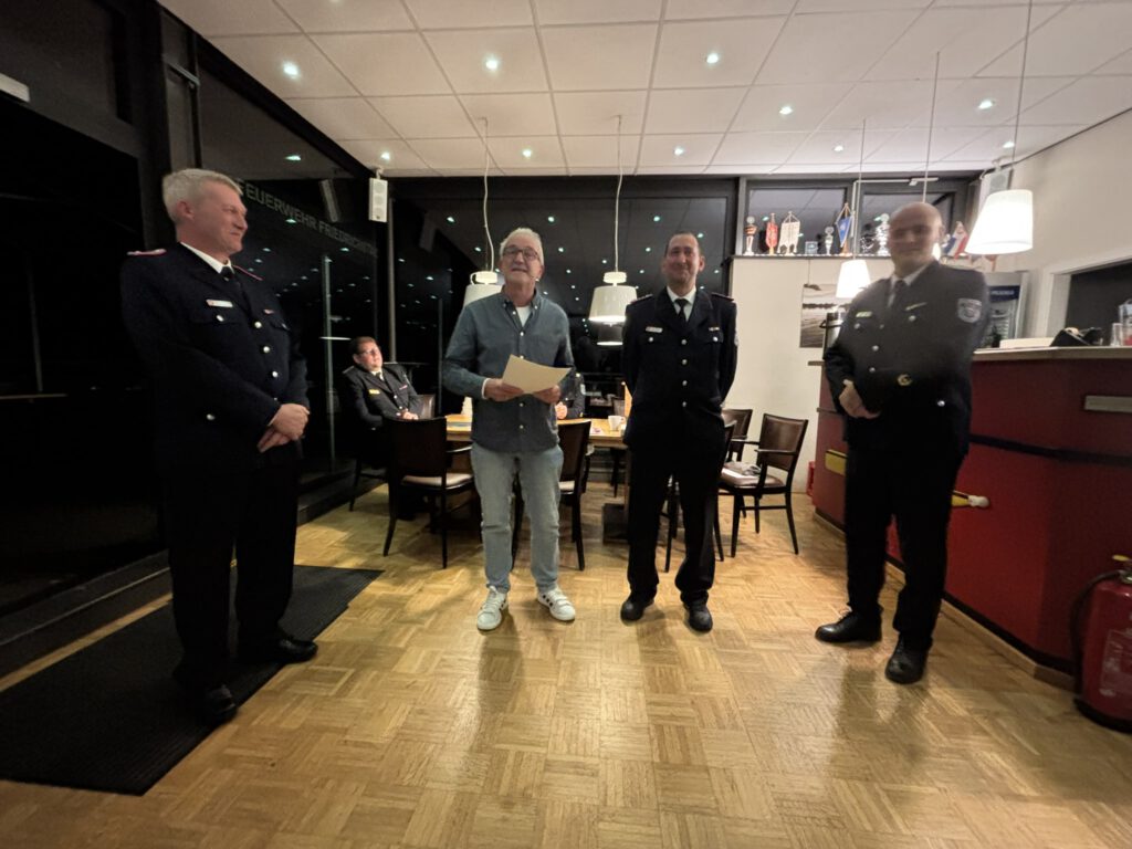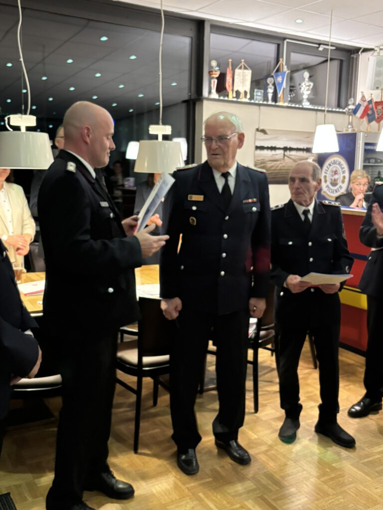 Ein besonderer Moment war die Ehrung von Hans-Dieter Boysen, der auf 70 Jahre Mitgliedschaft in der Feuerwehr zurückblicken kann. Hendrik Pyhsa dankte ihm nicht nur für sein langjähriges Engagement, sondern auch für seine großzügige Spende für die Jugendarbeit. Weitere Jubilare des Abends waren: