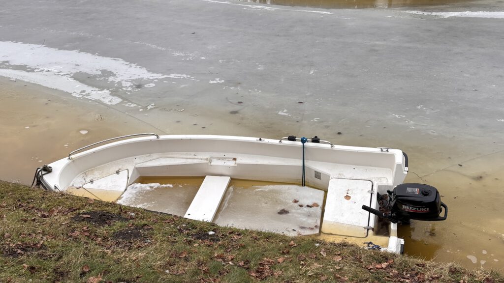 Durch das einsetzende Tauwetter der letzten Tage ist ein Sportboot inkl. Motor und Treibstoff durch den Druck des Eispanzers unter Wasser gedrückt worden. Um eine Umweltgefährdung auszuschließen haben wir das Boot aus dem Eis dem befreit, die Schwimmfähigkeit wiederhergestellt und anschließend den Motor und die Kraftstoffe vom Boot entfernt.