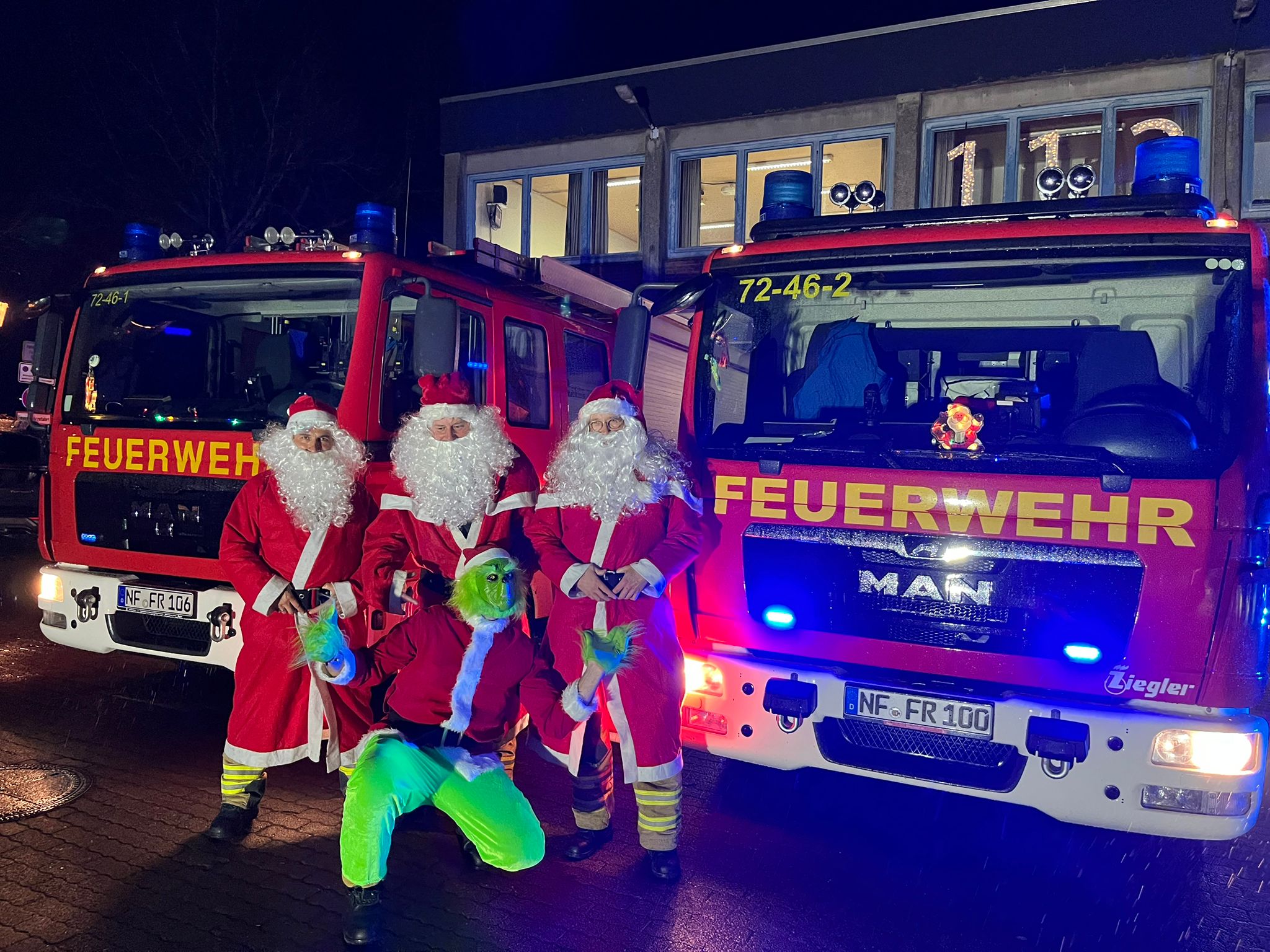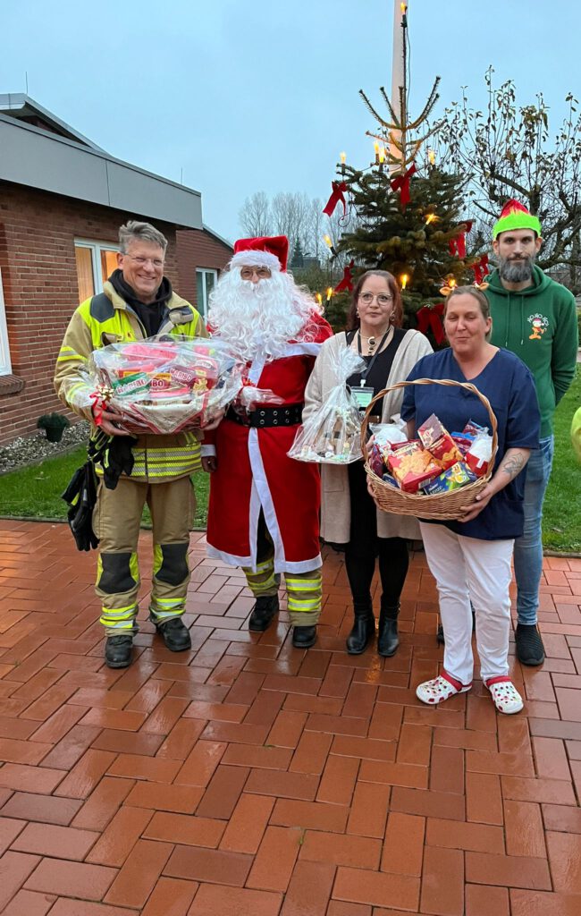 Wie jedes Jahr besuchte die Feuerwehr die Bewohnerinnen und Bewohner der beiden Altenwohn- und Pflegeheime in Friedrichstadt. Insgesamt waren 11 aktive Feuerwehrleute im Einsatz, darunter drei Nikoläuse, die süße Leckereien und Präsente überbrachten.